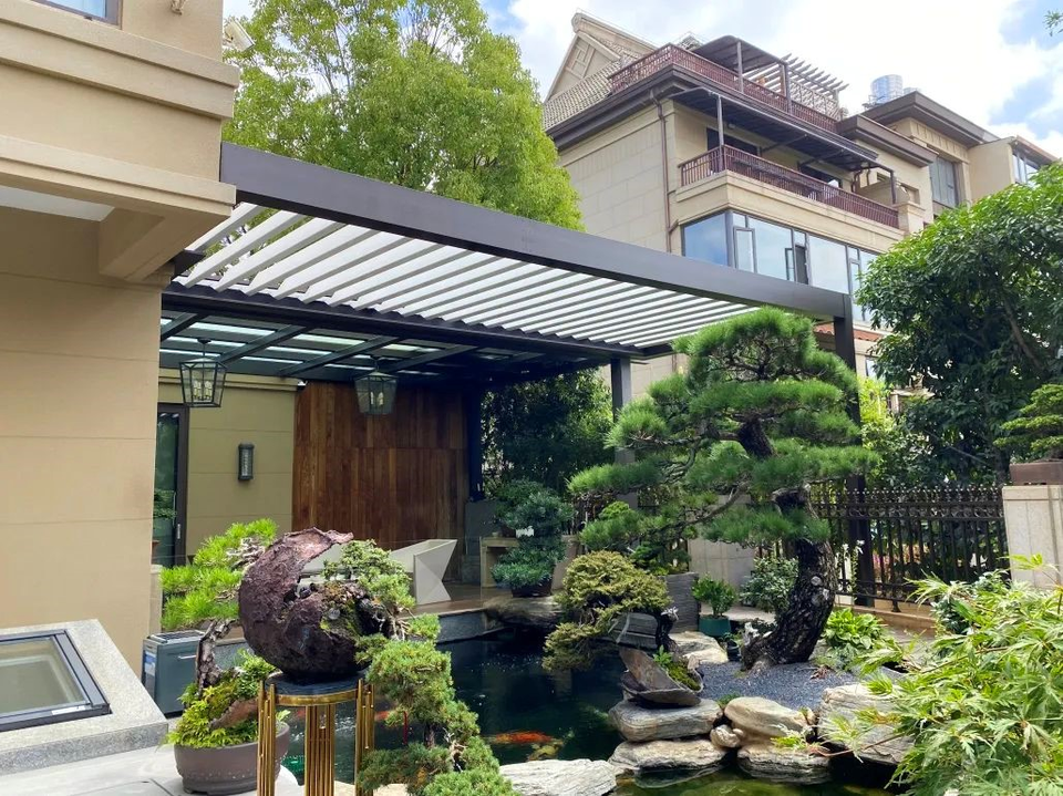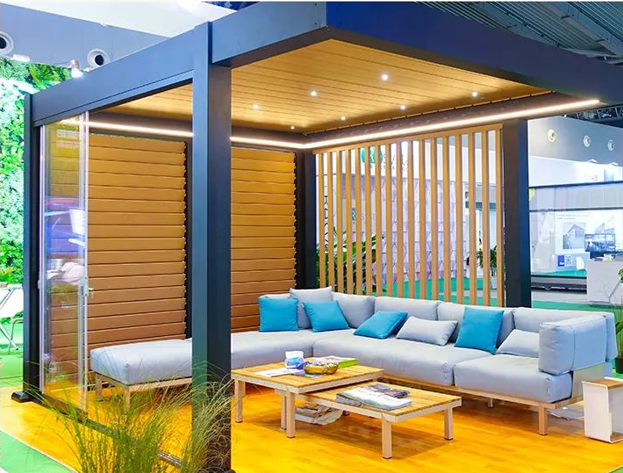 Modern Outdoor Aluminum Pavilion Rust Prevention Wind Resistant Pavilion with Louvers and Folding Doors