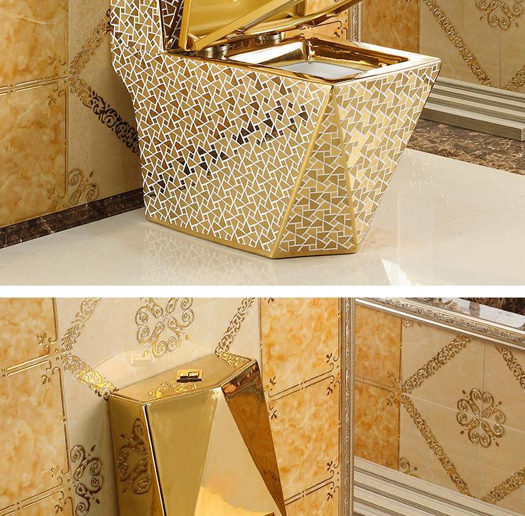 Luxury Design Modern Golden Color Commode Toilet Bowl Ceramic Sanitary Ware One Piece Electroplated Gold Toilet
