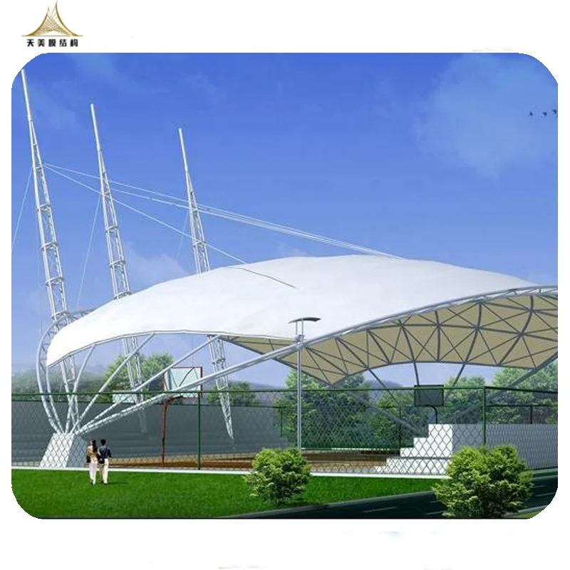PVDF PTFE ETFE Material Sports Canopy Tent Waterproof Curved Tensile Roof Membrane Structure