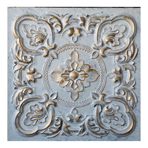 PL30 Aged White Gold Color Suspended Ceiling Tiles PVC Wall Panel for Literary Book Bars Fireproof Square Shape