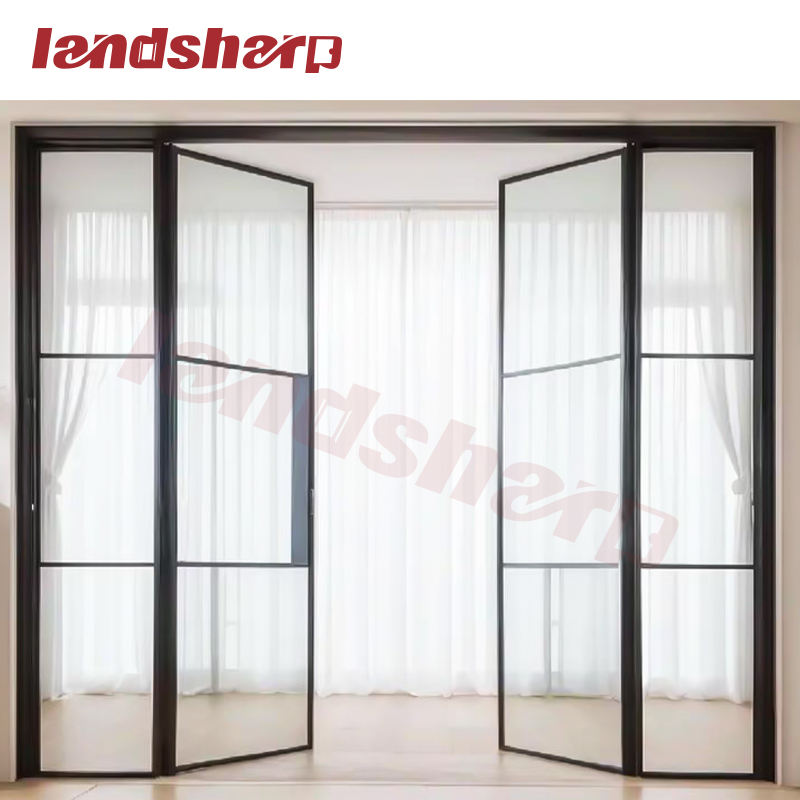 Modern Indoor Aluminium French Casement Door Glass Walls Divider Interior Metal Framed French Doors